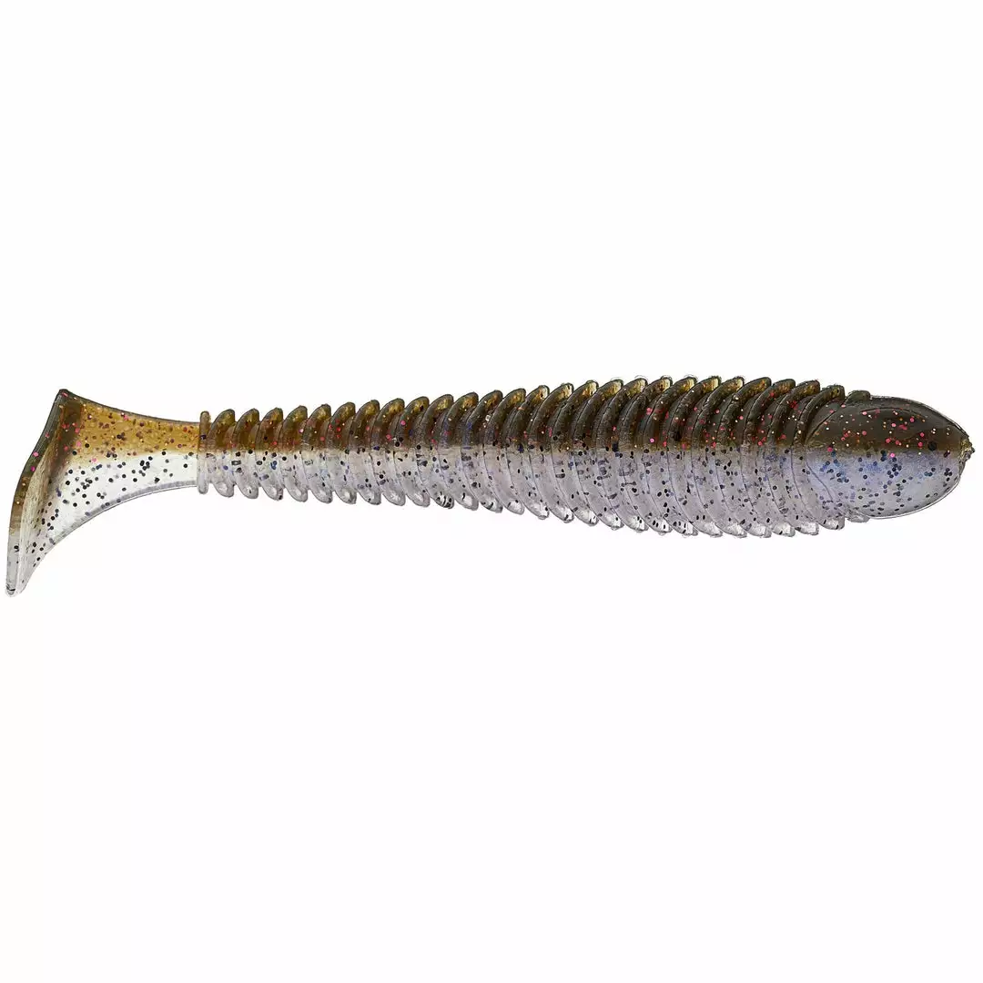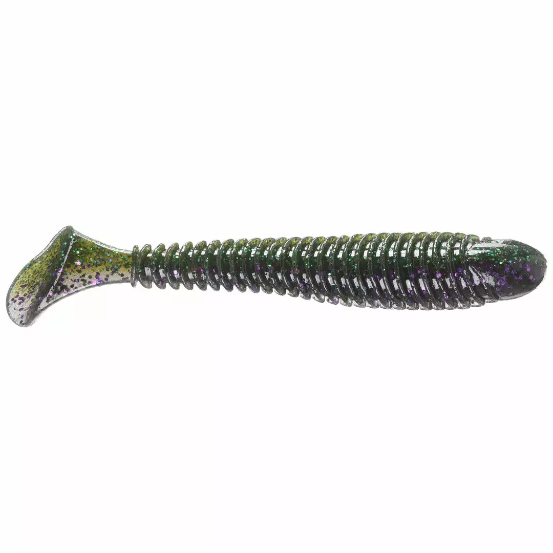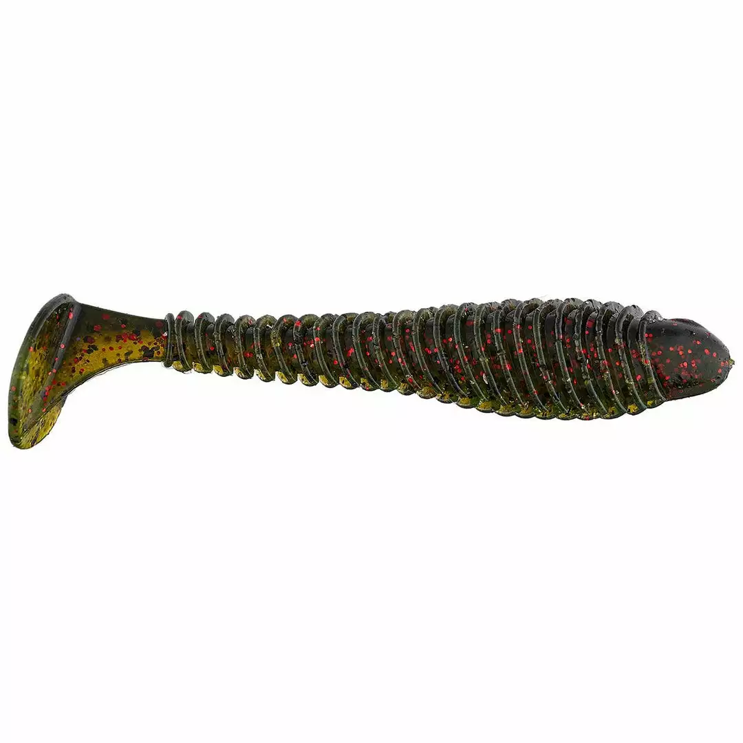 The in line ribs and below the belly boot style tail on the Saucy Swimmer are designed to grab and disperse water while swimming to give the tail an irresistible wagging kick and the body a natural wobbling motion. Use the Saucy Swimmer on a light weighted hook for shallow fish or rig it on a jig head for suspending deep fish. Sauce up a vibrating jig to amplify thumping action or use on spinnerbaits and buzzbaits for a more life like bait profile. Available in 3 different sizes and a variety of delicious colors to match the forage in your water. All googan baits are infused with Slaunch Sauce and come aligned in clam packs giving you top notch action as soon as it hits the water.