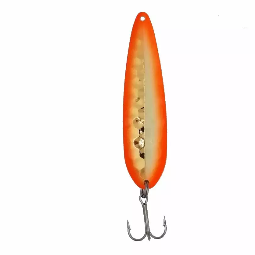 The Moonshine Half Moon Spoon is a hand painted, UV reflective spoon designed to attract salmon, steelhead, trout, pike and many other species. The silver back delivers eye-catching flashes that fish can’t resist.Â