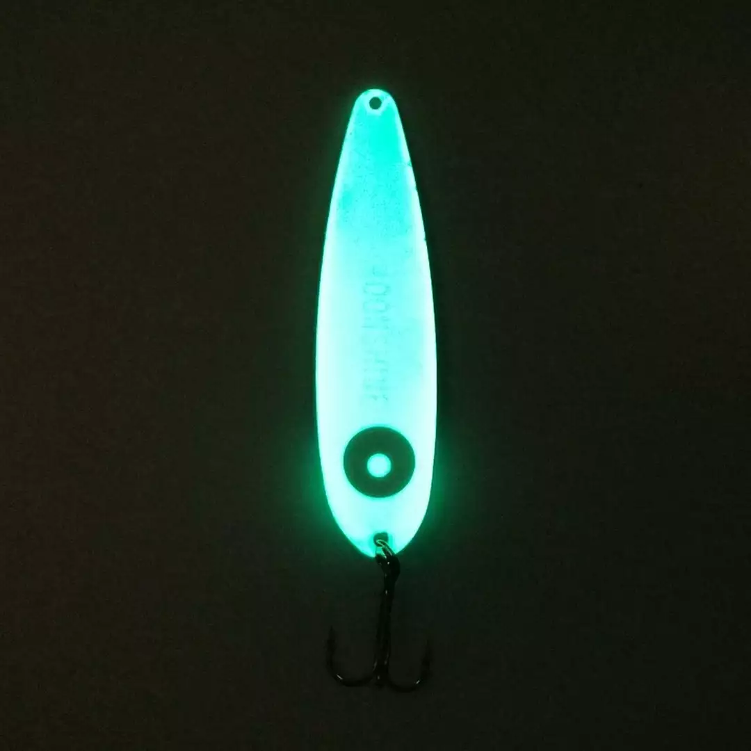 Please note: Images provided by Moonshine Lures to show the lure under regular light and under UV (sun) light. “Glow” colors will glow in the dark. UV lures “glow” under UV light, but may not glow in the dark.