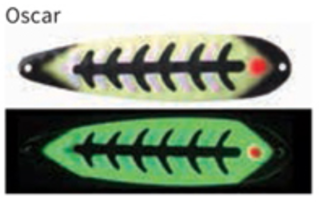 Please note: Images provided by Moonshine Lures to show the lure under regular light and under UV (sun) light. “Glow” colors will glow in the dark. UV lures “glow” under UV light, but may not glow in the dark.