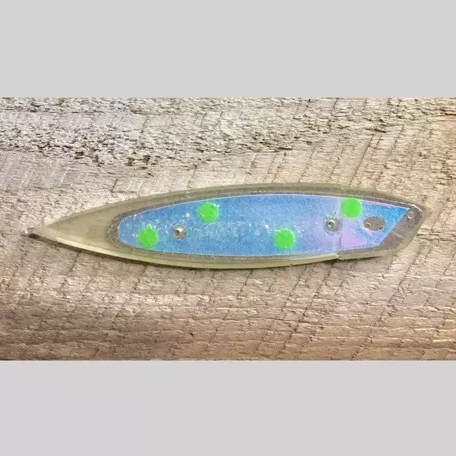 Prime Cut is a 5 1/8″ imitation cut bait that can be rigged with magnum or regular sized cut bait heads. The Prime Cut is available in a variety of colors to attract both Salmon and Trout. They are also very durable, and can be used over and over versus a strip of cut bait that’s used only once. Once tuned even a short strike won’t knock it out of tune. One bait per pack