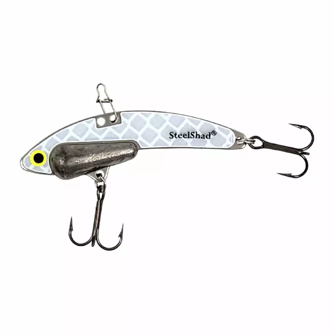 The SteelShad® Glow Heavy Series 1/2 oz. blade bait is 2 1/4 inches long, made from durable stainless steel with a molded lead weight, and features two #8 VMC Black Nickle hooks and line clip. SteelShad’s glow effect is instantly charged by sunlight or any other light source. During the day, each lift of your rod will allow the natural sunlight to provide a long lasting luminescent charge to keep the lures glowing below the waters surface. During low light or nighttime conditions, the quick use of a flashlight can be used to recharge the lures between casts.
