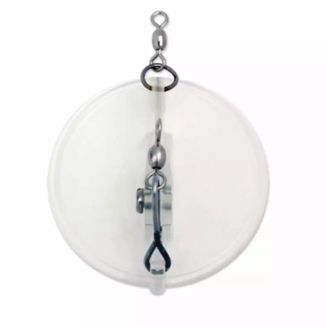 The special round shape and resulting multi-directional feature sets the Dipsy Diver® apart from all other divers and planers. A shift left or right, as indicated on the base plate, will cause the diver to track to port or starboard, allowing for large spreads of lures to be fished from a single boat. You’ll cover more water when the Dipsy Divers are deployed. The adjustable trip mechanism can be set specifically for various lure sizes and the size of target fish. Four sizes of Dipsy Divers are available, with dive depths of up to 20, 35, 50 and 100 feet. See our Tech Report: Dipsy Diver, The Directional Diver and Tech Report #15: Trolling Spoons for Freshwater Salmon, Striped Bass, Trout.